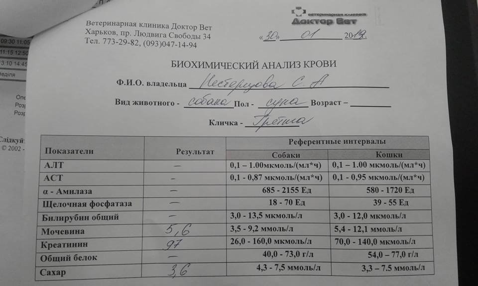 Вот уже креатинин пополз. :( какой то странный пазл у Гретты. Глюкозурия, пиометра, позвоночник, теперь креатинин. Ничего не забыла?