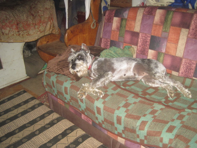 Вечером перед сном немного суетилась, ноя подняла её на диван, немного почесала-погладила и она уснула и спала спокойно , где-то до пяти... потом я открыла двери ,Тасечка вышла , сделала дела и пришла досыпать на диван.)) Днём предпочитает находиться на улице...