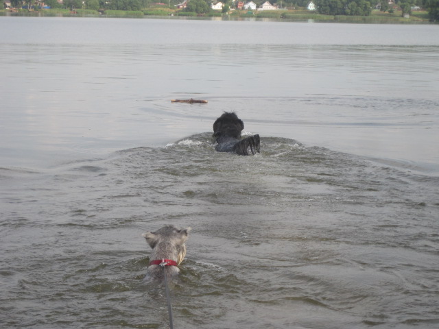 Ир!!!! Эта звездюсина плавает!!!!! Не то что бы- не тонет,а именно плавает!!! ! Фира номер два)))))По воде аки посуху!!!! На глубине у Тёмы палку отбирала!! и вот сколько раз бросала падку, столько она и плавала, а потом еще попыталась доплыть до камышей-посмотреть а что же там!!
