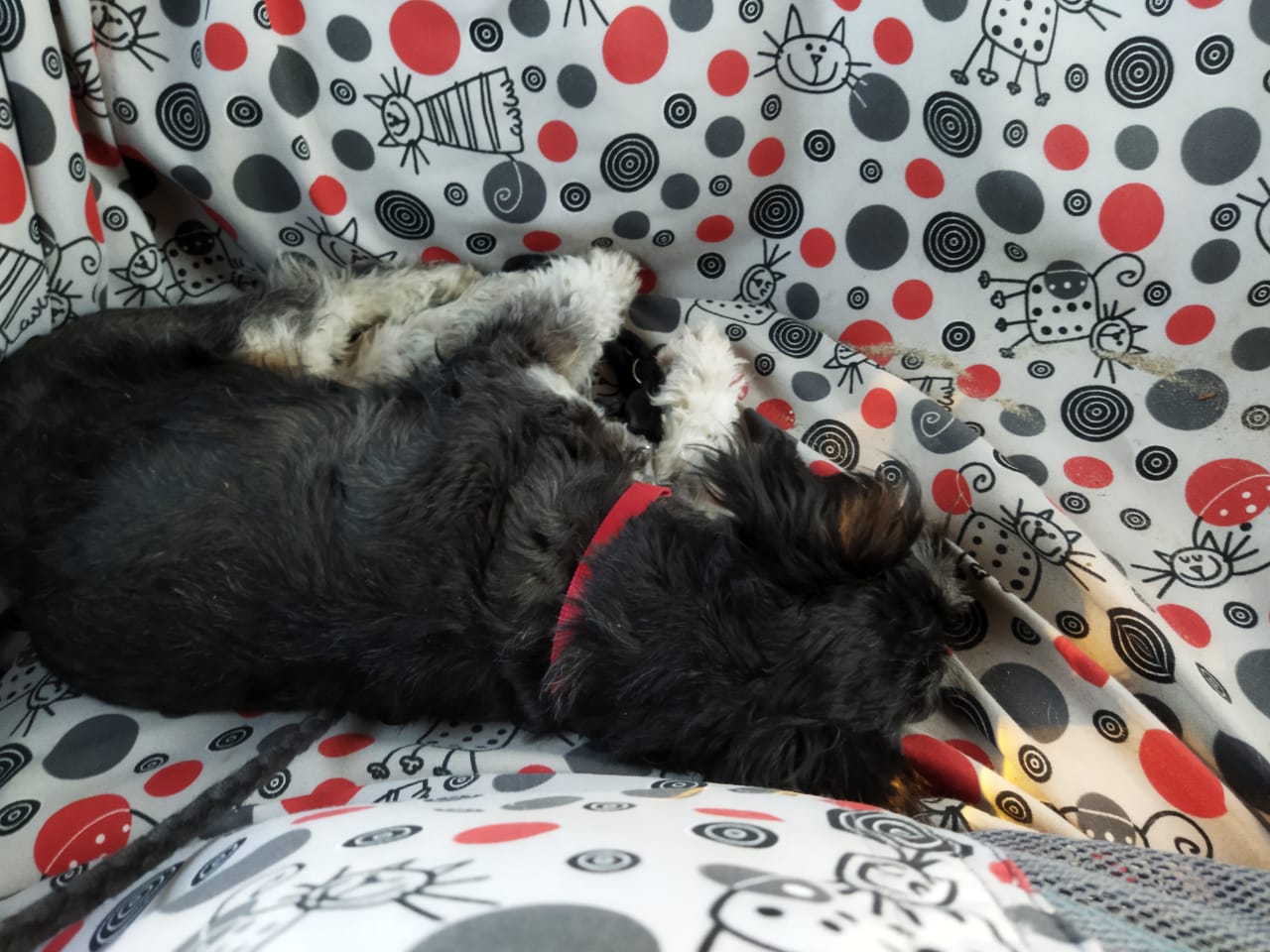 на нашей стороне. Всё увидела людей , с мелкой. Перешли! Отзвонилась Вале, забрали малышку и поехали домой. По пути заехали за ветпаспортом(подарили его для барышни), она пересекала границу с паспортом чужой собаки. Облаяли коров на выпасе, собак на заправке.