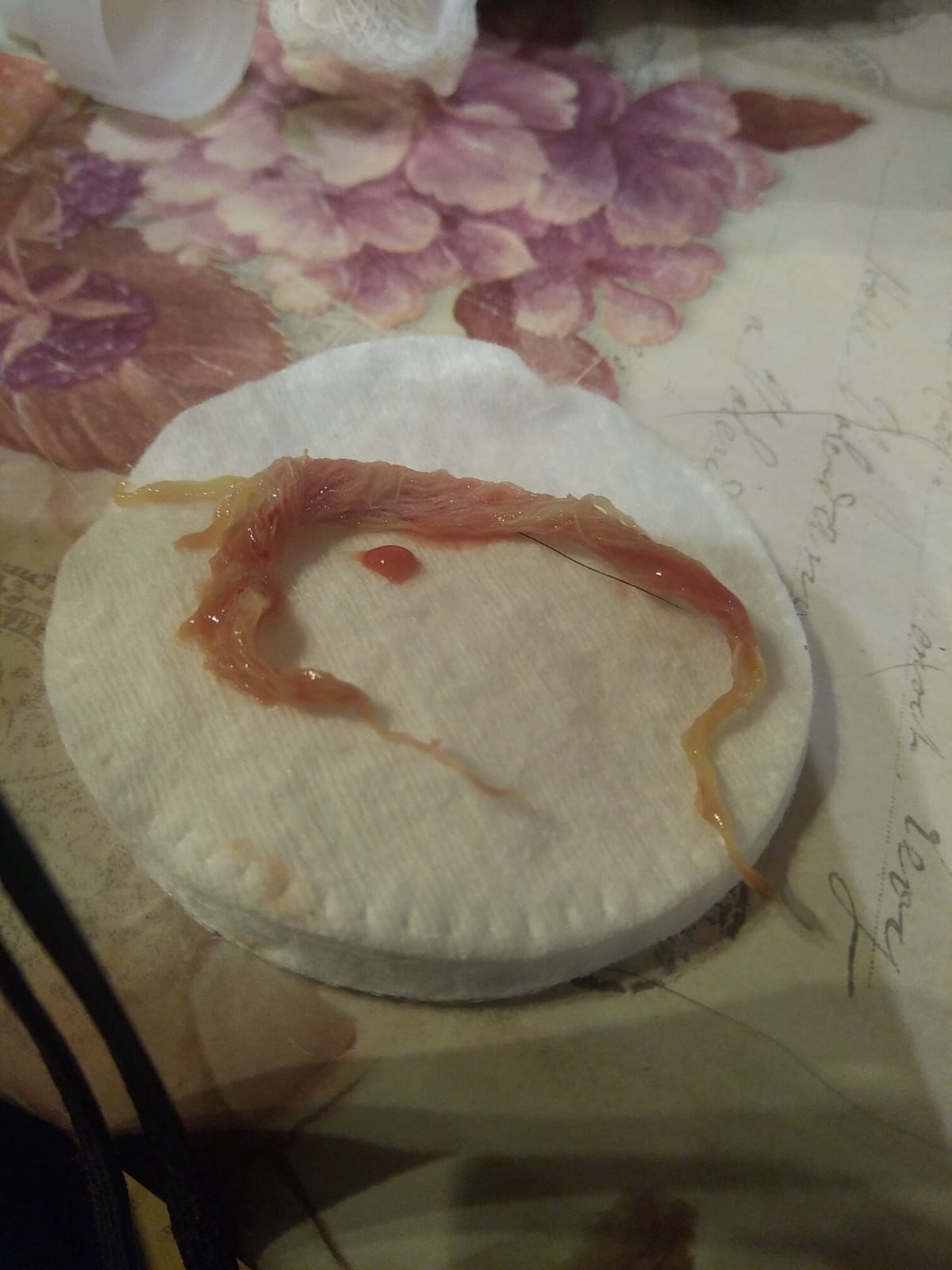 Я сегодня достала пучок ниток, с горох суммарно, не по старому свищевому каналу, а с противоположной стороны..... (парадокс).