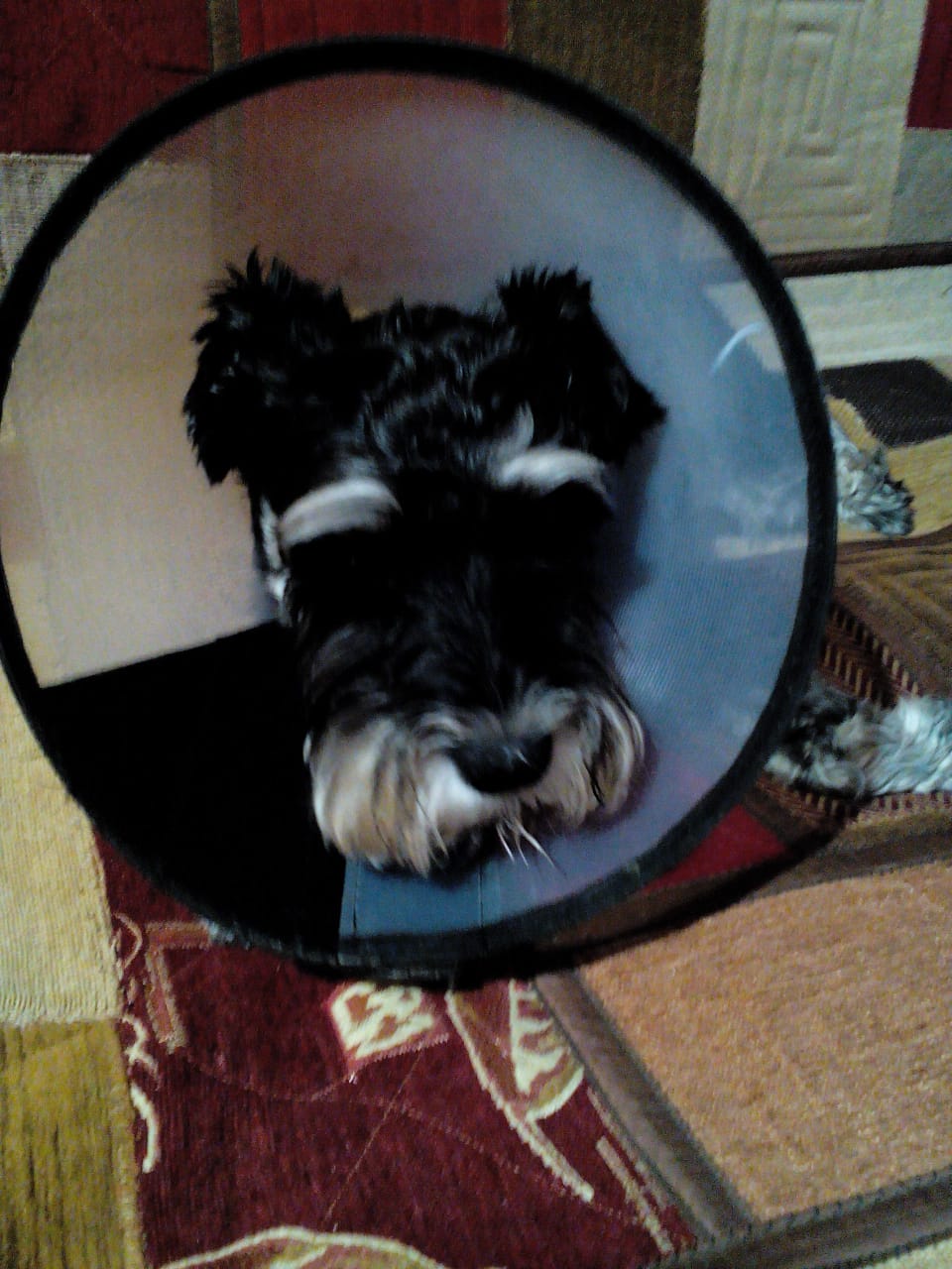 Добрый день всем! У нас с Шелдоном случилась такая история. Буквально за пару недель на боку выросла опухоль размеров с маленький грецкий орех. Небольшую припухлость в этом месте я заметила сразу, когда забрала его. Потом спросила у Юли, она сказала, что ничего не замечали и собаку ничего не беспокоило. И вот вдруг эта припухлость преобразовалась в такую огромную шишку. Ветеринар сказал, что раз за две недели не рассосалась, ждать нечего. Пришлось оперировать. Сейчас ходит в воротнике. Поведение дома - более тихое, видно что ему и воротник мешает и шов все-таки дает себя знать, может чешется. Думаю, если б болел, он бы не бегал так же как обычно на прогулках. Анализы будут после 30-го. Шву снимут 27-го. Что это такое я так и не поняла. Доктор сказал, обсудим после результатов анализа.