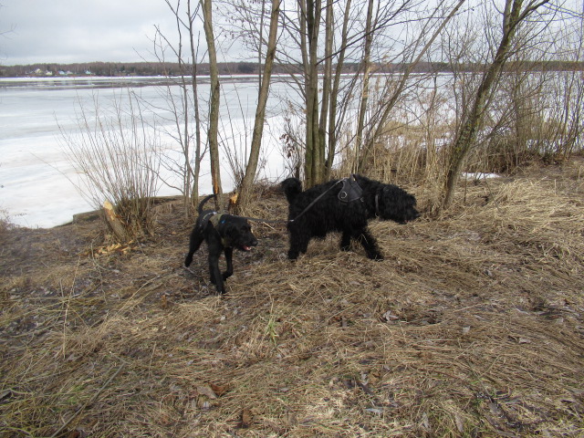 Тёма снял свой бойкот и теперь на прогулках снова носится к великой радости Рафы. ))) Тёма учит её играть в палки, и отнималки- у Рафы получается)), но с таким голосовым сопровождением-мама не горюй)))Тёма научил Рафу не опасаться воды и они открыли купальный сезон :yes: Но вода пока очень холодная и Рафа с большим удовольствием из неё выскакивает ;) ,но заходит тоже с удовольствием, после воды они с Тёмой долго носятся по берегу))Когда к ним присоединяется Шкипер, Рафа начинает на него охоту и кусает его за спинку :yes: и тогда они голосят все втроём)))