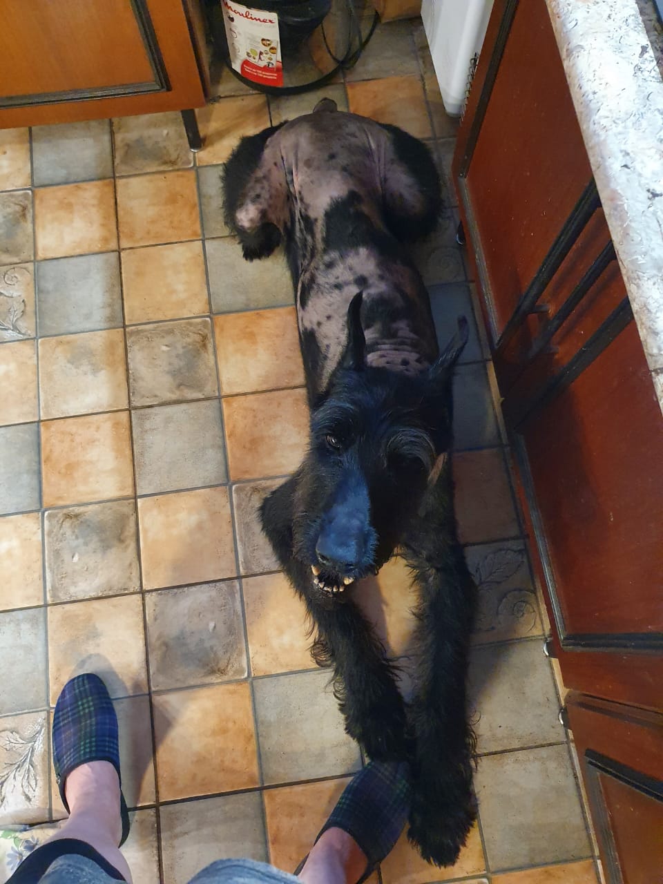 Лысый он не после тримминга, как думали, а хозяева считают, что это аллергия. Ну, по-моему не похоже это на аллергию, надеюсь, ещё поищут причину.
