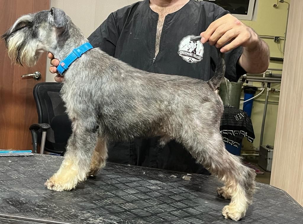 Кобель перцовый. Клеймо KER 697. Ошейник голубой. Задирает кобелей, в обществе сук спокойный. Смелый, не агрессивный. Груминг отлично. Шерсть средней жесткости/ тримминг. На правом ухе подкожное скопление жидкости. Требует внимание и уход.