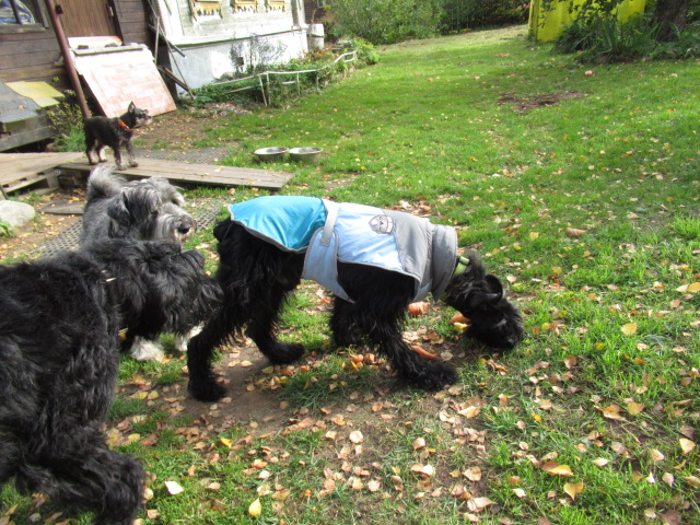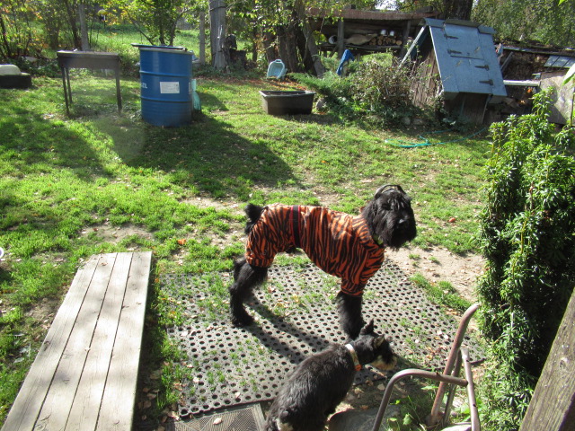 Ну...нам не на выставку)) Это была примерка...Бабье лето скоротечно(((Так ,да, талия осиная , но хоть стиральная доска прикрыта.. По теплу и солнцу- будет пока бегать голый, а к вечеру и на ночь буду одевать...и Ников скелетик и Фаби.
