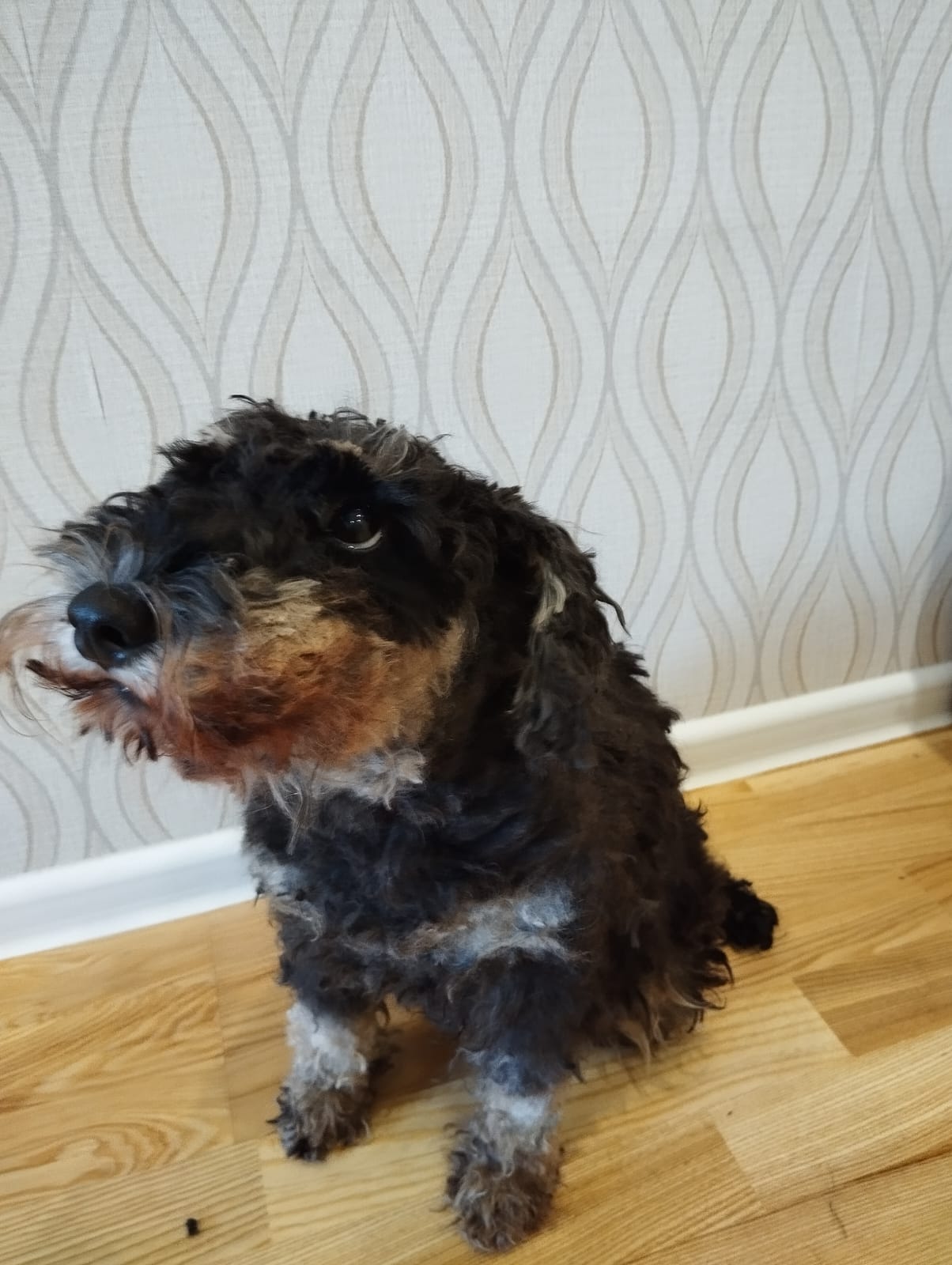 Нет возможности тримминговать собак, поэтому два раза стригли ножницами.