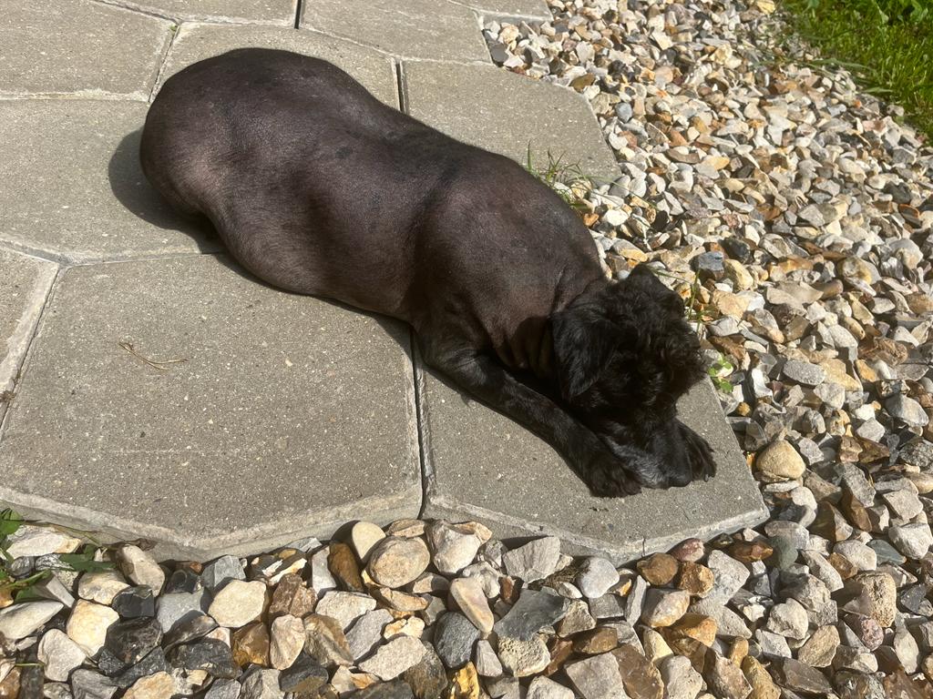 Клеймо Раиса не нашла, даже следов, хотя оно там точно было. Собака не старая по словам ветеринара. Предполагаю, что она одна из двух оставшихся неопознанными родословных черных сук, других собак там вроде и не было, всех пересчитали. Либо она AVZ 6863 Милисента принцесса ночи, д. р. 10.04.16, либо KER 645 Рус Дарбис Баккарди Блэк Гламур, д. р. 09.09.2016