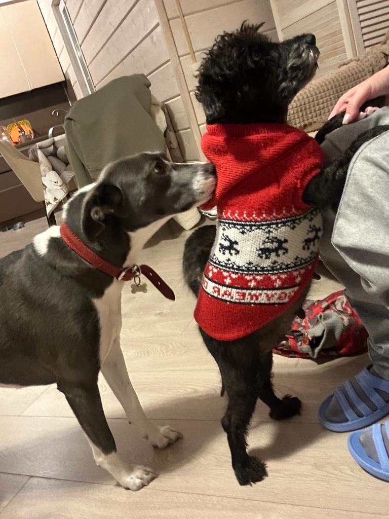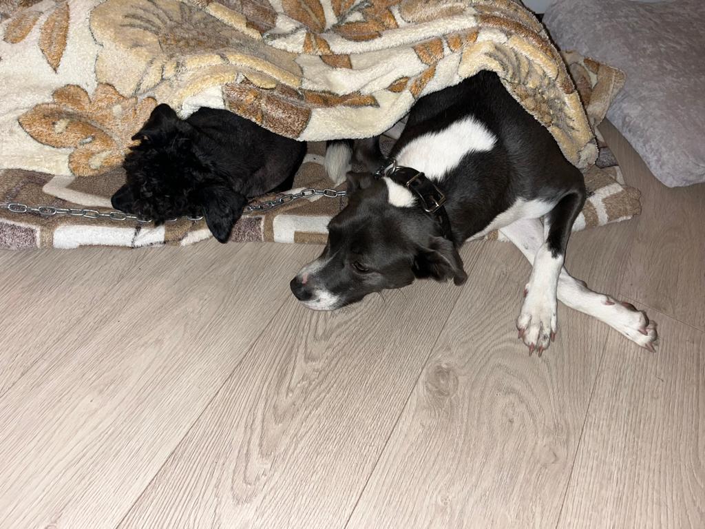 Одна из собак Елены Ершовой, черная цверга была забрана накануне приезда заводчиков зооволонтерами, и в итоге обосновалась у Раисы в Москве. Взяла она ее на передержку, так как предполагалось, что собака глубоко беременна и еще у нее была серьезная рана на шее и выглядела она больной.