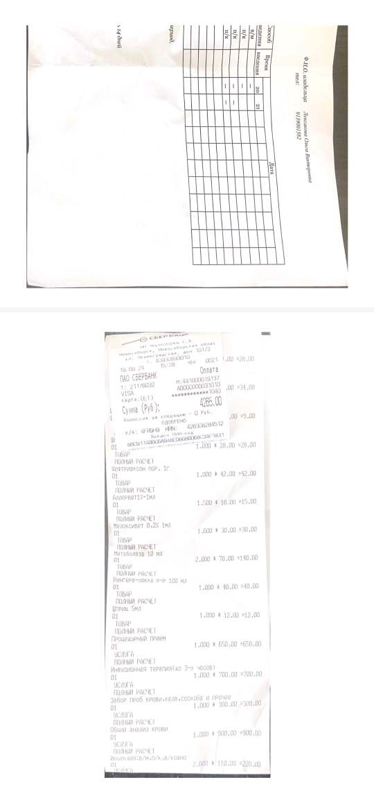 Чеки за визит к офтальмологу и лекарства.