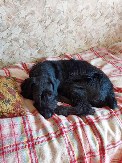 Крутился, как уж на сковородке, не знает он груминга. Но агрессии не проявлял. Ходит за Еленой или сядет возле нее и голову на колени положит.... Дома остается один прекрасно, на диваны/кровати не лезет, не орет.