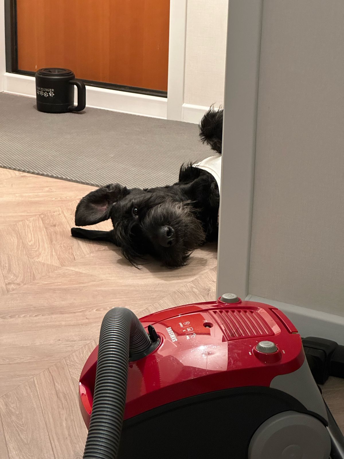 Дома не писает, если нет возможности выпустить на выгул днём, то спокойно терпит с утра до вечера.