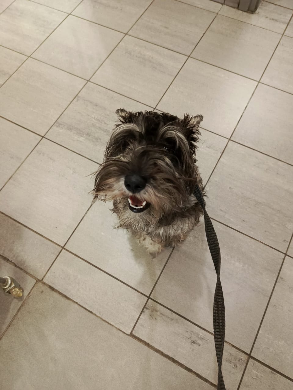 Лиза ему побрила остальные лапы, так как там все в репьях и ему кололось. Бороду немного выстригла, немного разобрала.