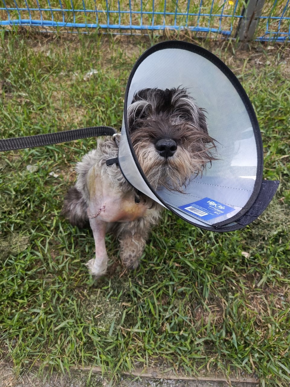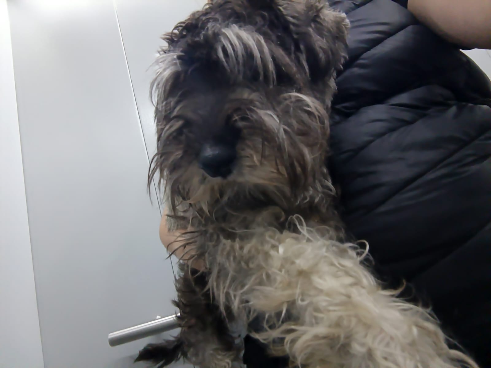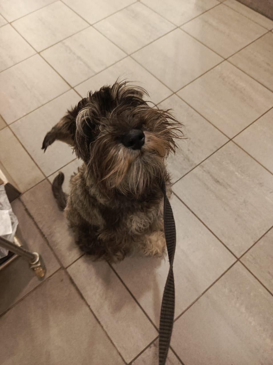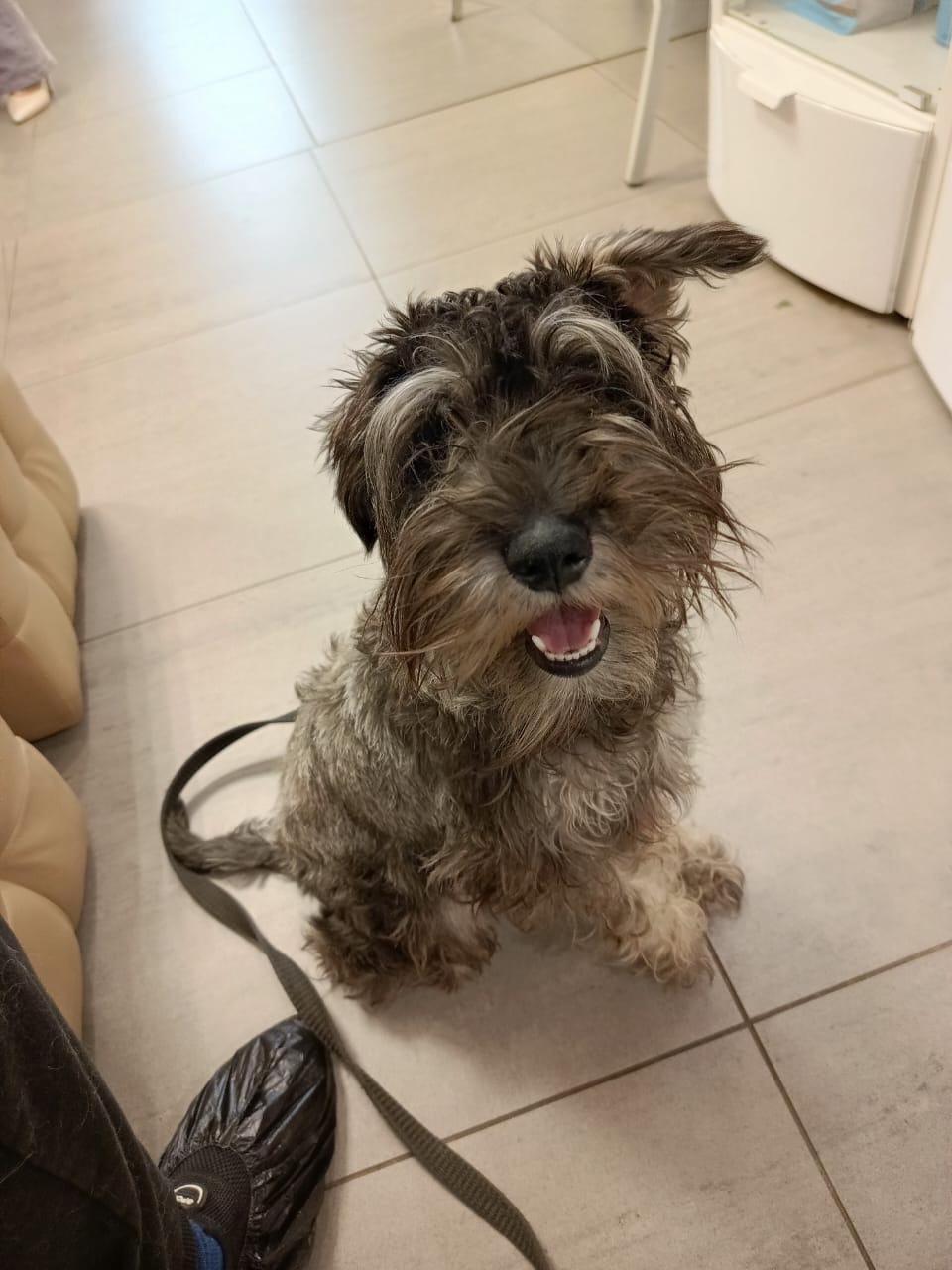 Лиза ему побрила остальные лапы, так как там все в репьях и ему кололось. Бороду немного выстригла, немного разобрала.