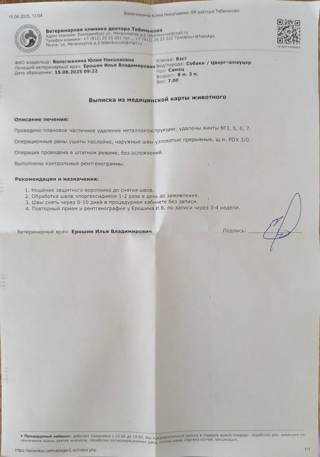 Бэста выдали из клиники, операцию сделали, швы снимать через 10-12 дней и контрольный рентген через полтора месяца.