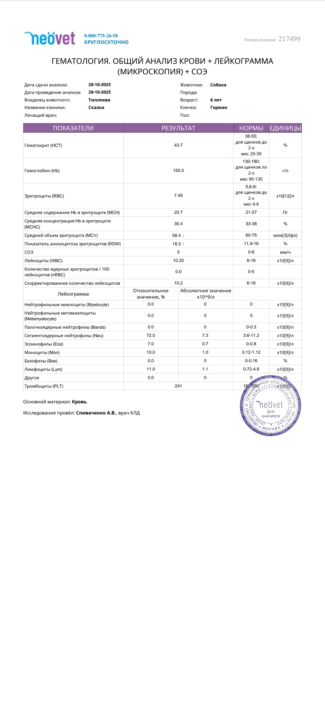 Поэтому решили отложить операцию по кастрации на месяц. Нормализовать жкт, и посмотреть изменения на селезенке. После этого принимать решение по объему необходимой операции.