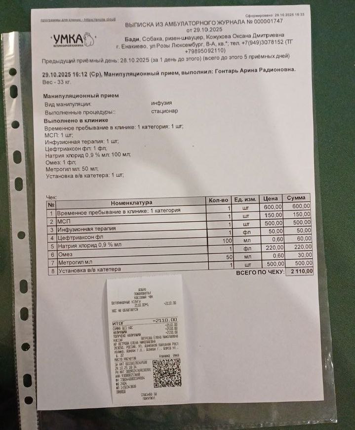 Юлин брат оплачивает стационар, чеки собирает. Немного некогда ему скинуть их мне, армия, сами понимаете ,а иногда и домой не попадает, а остаётся на питомнике..