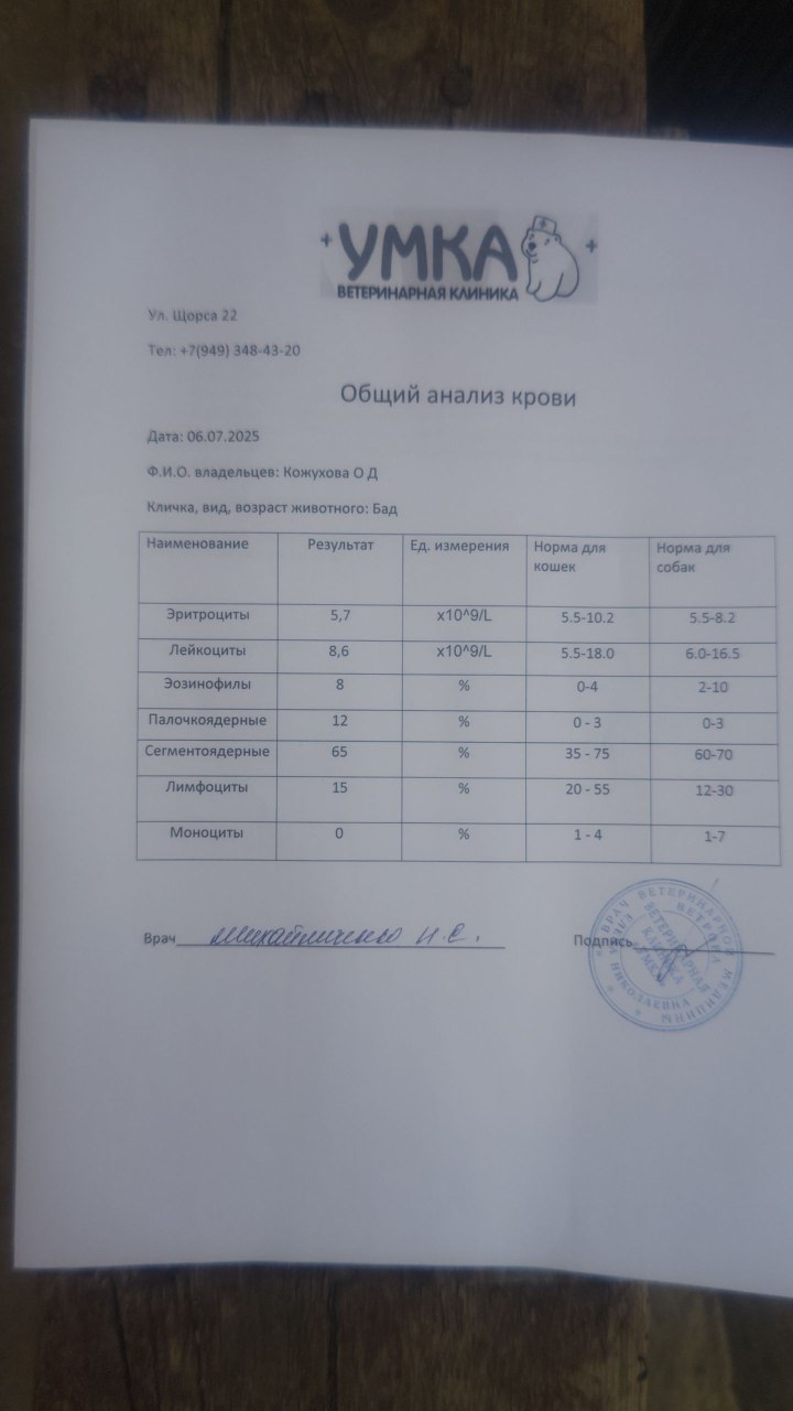 Меня обнадёживает, что он ест. Что при такой интоксикации сложно и креатенин в норме.