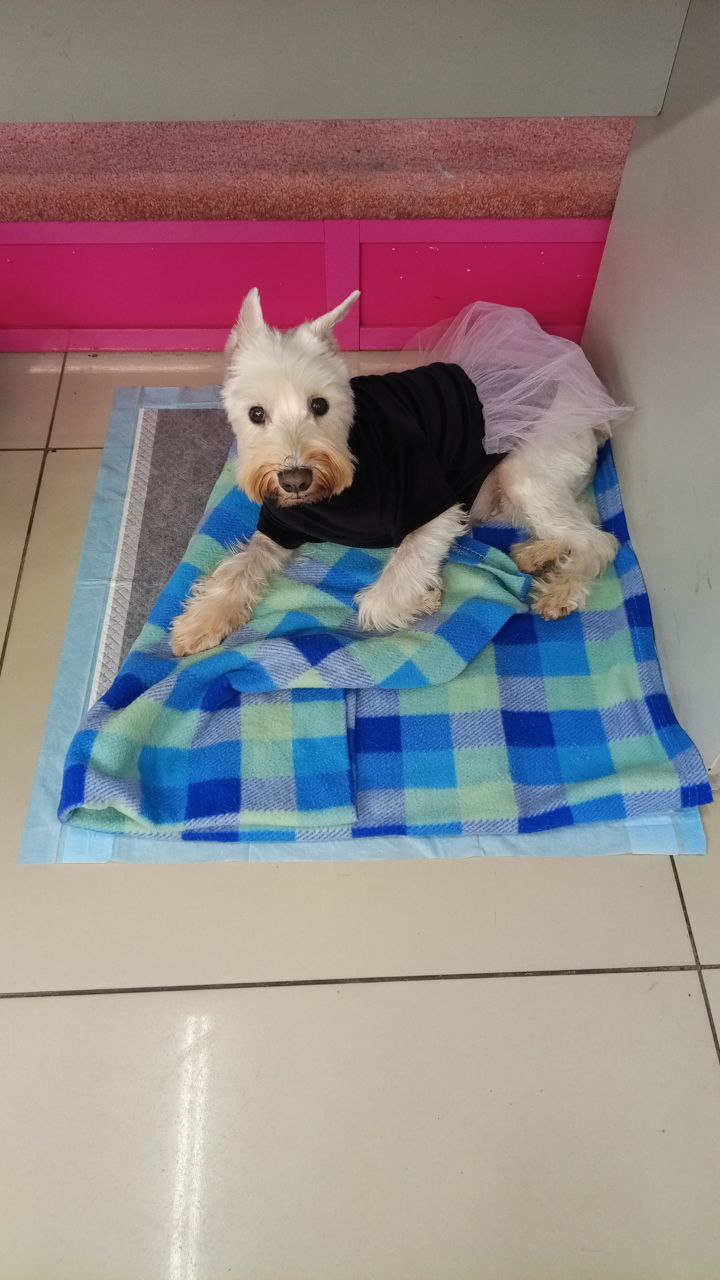 Белочка поехала сегодня притираться в Луховицы. Ей купили ошейник, надели комбинезончик и забрали.
