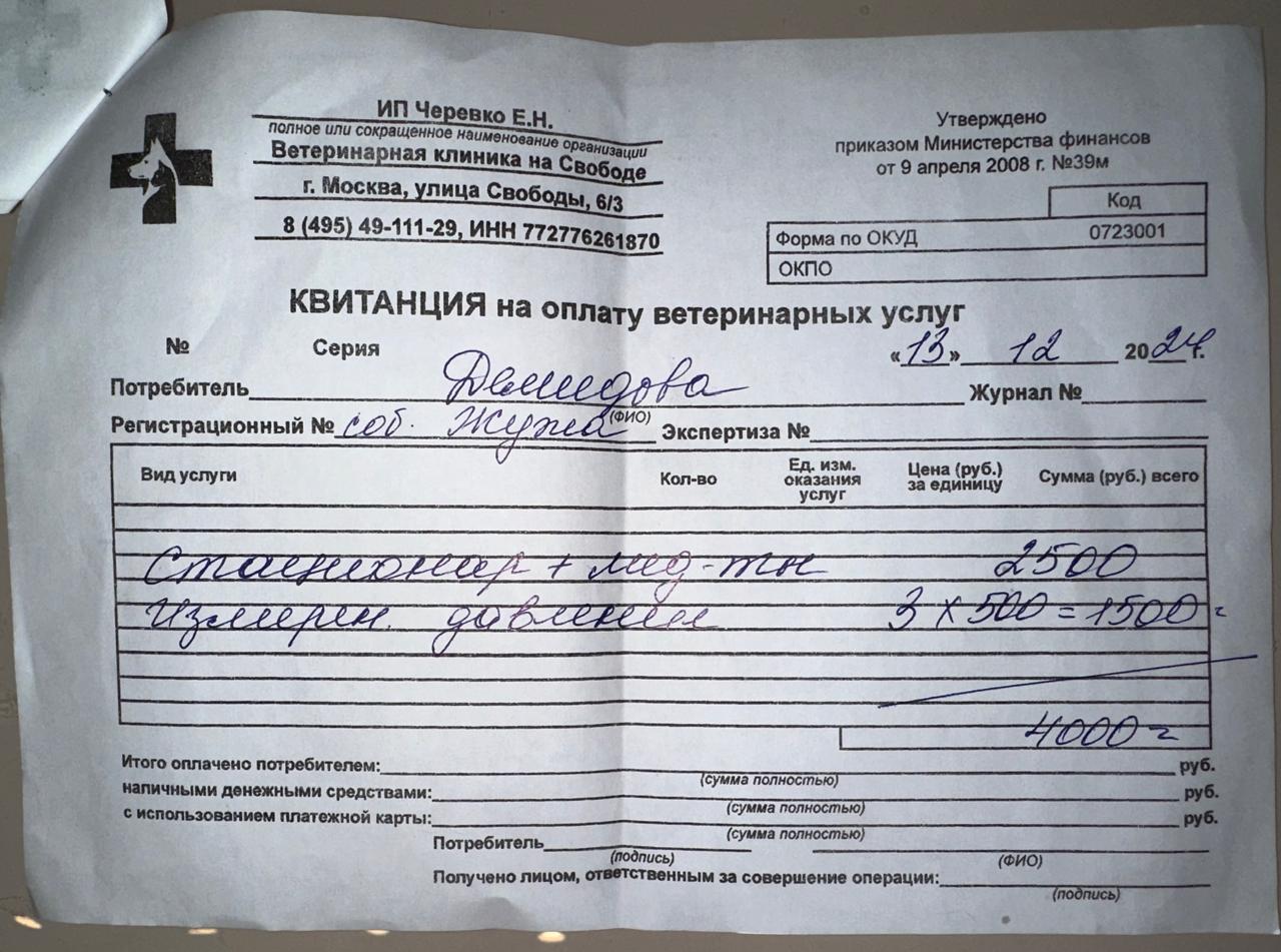 Жужка лучше, спит и ест. Вроде повеселее стала. Но иногда стала писать дома.
