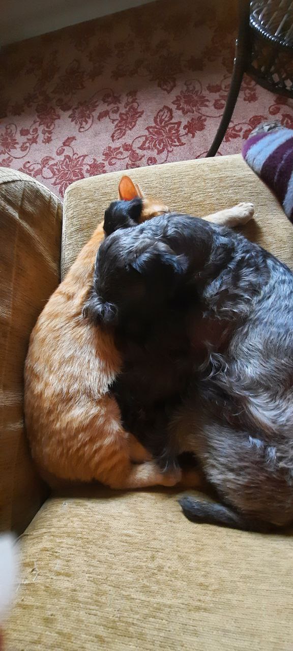 Шарфик более-менее ужился с Эшом, рычат друг на друга, но иных проявлений агрессии нет.