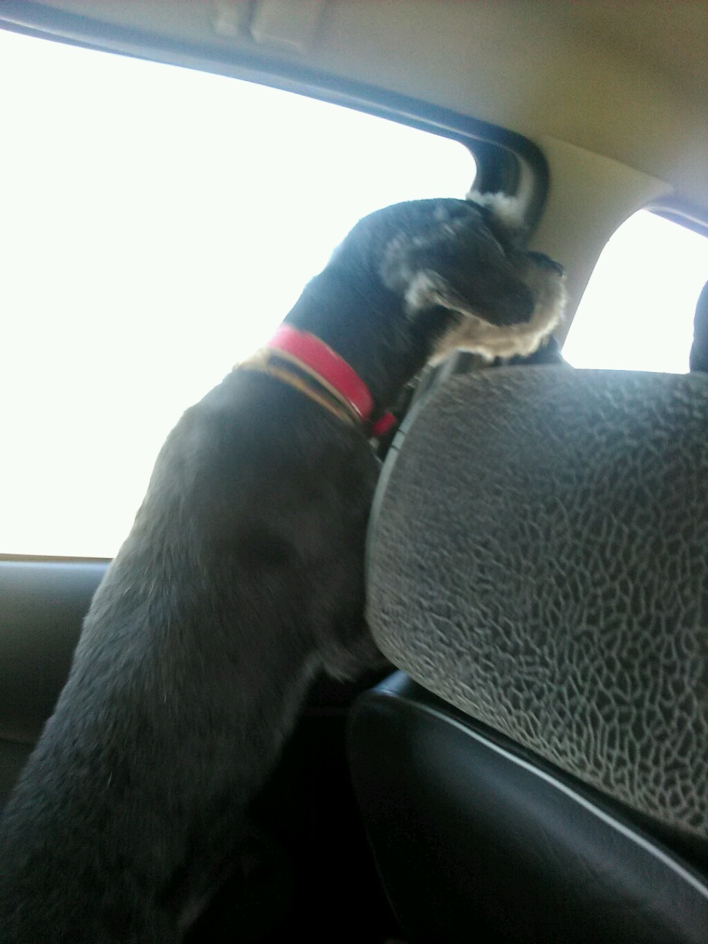 В машине ехал 4 часа стоя!!! Я думала , что следит за дорогой, а потом поняла - из водительского окна ветерок, так вот он и морду поставлял!!!!