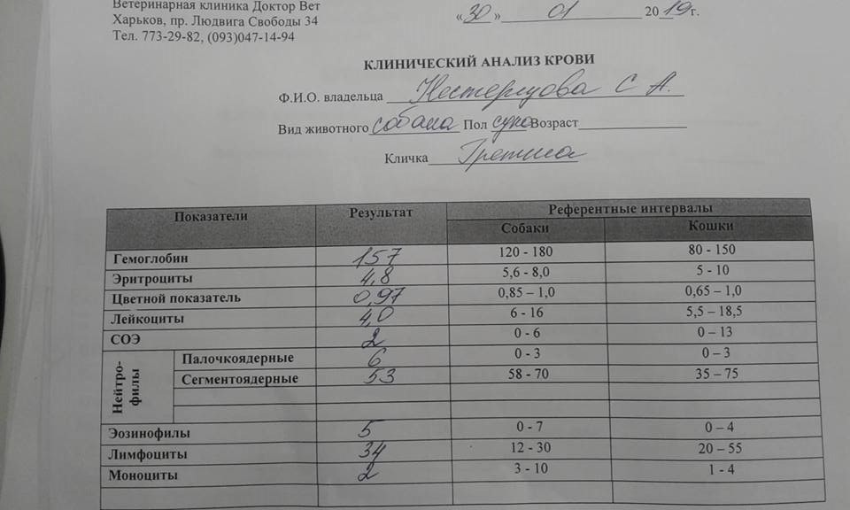 Добавляю анализы Гретки за 22.08.2018г.