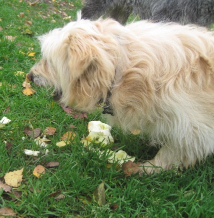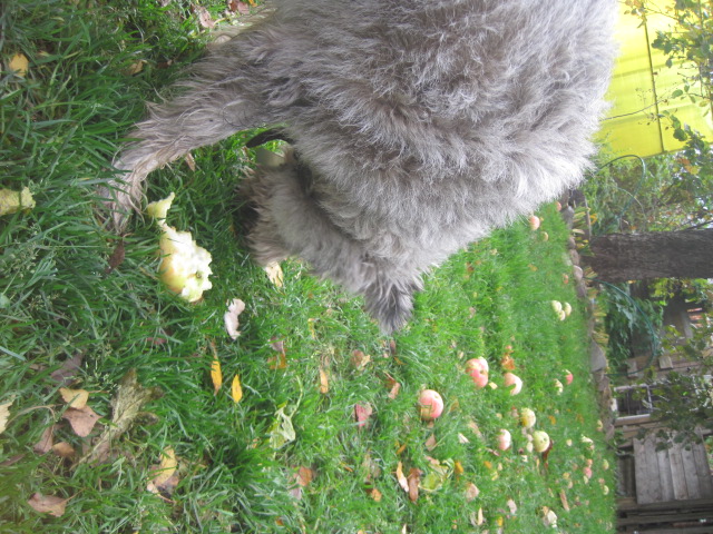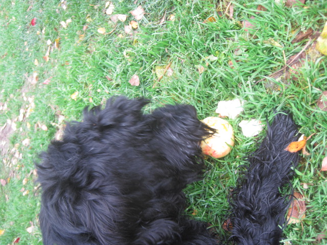 Яблок так много что - Генка стал гурманом и съедает только часть яблока...видимо самую вкусную Тёмка-долго играет в "кусь-футбол" каждым яблоком ,прежде чем его слопать))))) а ест уже лёжа