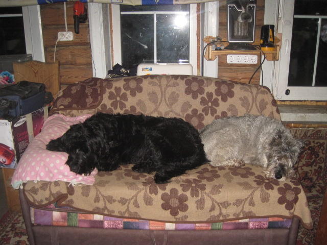 Собаки уже почувствовали надвигающийся кипишь и заняли места согласно купленным билетам- Генка и Мухтар …)))))(охрана-мать их волосатая) носятся от морозильника до калитки и обратно оповещая всю деревню о происходящем, Шкипер и Тёма , как обычно крутятся -вьются между ног, всячески тренируя свою любимую маму в ловкости, и увеличивая скорость передвижения(???!!!) А надо ещё добавить , что «собачий морозильник стоит в трудно доступном месте, и подход к нему затруднён…Он зажат в углу, между диваном и клеткой.