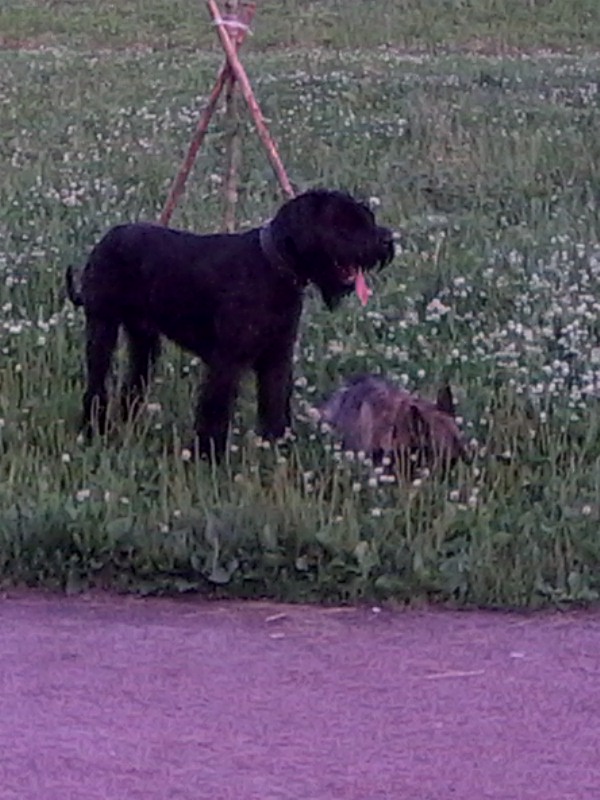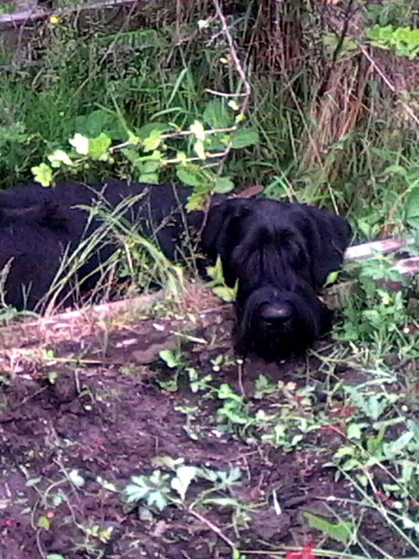 Сейчас - мы влюбились в эту собаку:)) Даже муж, который был фанатом лаек, теперь фанат ризенов:)