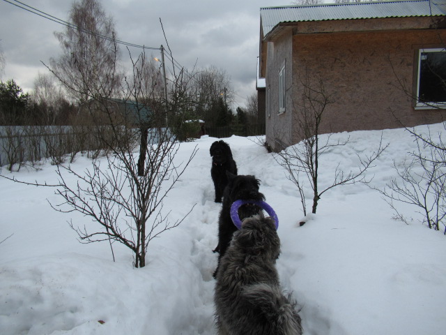 А с Данькой не то что бы повезло, просто притока новых гормонов нет,))) и тех что есть -всё меньше и меньше))) Эта проблема будет потихоньку уходить)) Как уходит страх перед салютами)) Вот вечером вышли и попали под "канонаду" ,за рекой охота, а в селе день св. Валентина, будь он неладен))) А я как раз притомившись маленько и с Даней гулял Тёма))) Даньке бы испугаться грохота, а Тёме -пофиг))Тёма рысит спокойно впереди, тащит за собой Даню. Тащит и хвостом ритмично так помахивает , аккурат по Даниной морде)))Даньке бы пугаться ,а приходится от хвоста уворачиваться )) Бабахает-где-то там, а хвост -вот он )))И Тёме всё по барабану-прёт как танк)))) Так и гуляли))
