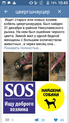 Когда его нашли, никто в местных группах не выкладывал объявления о нём. Ни к врачам, ни в клуб не обратились. Когда припекло, на авито выставили. Марина и по местным группам выставляла объявления.Дима писал(а):Когда его нашли в Таганроге, на нем был одет ошейник чёрного цвета. В группах Таганрога он размещался, но откликов не было.