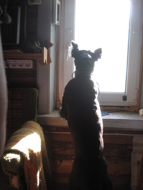 Вчера вечером , перед выходом на прогулку , мы с Багиром минут пятнадцать "танцевали" возле калитки...его танец назывался-"калитка открылась-я пойду", а мой-" пойдёшь когда скажу что можно" Стая, заняв места в партере, с интересом наблюдала, ни разу Багир не оглянулся на них ....одиночка))).Сегодня утром я приготовилась к таким же длительным "па" , но к моему удивлению, начав со мной "танцы" Багир стал оглядываться на остальных!!!!! кидал взгляды то на одного, то на другого..и..минут через 5 (пять) присел...!!!