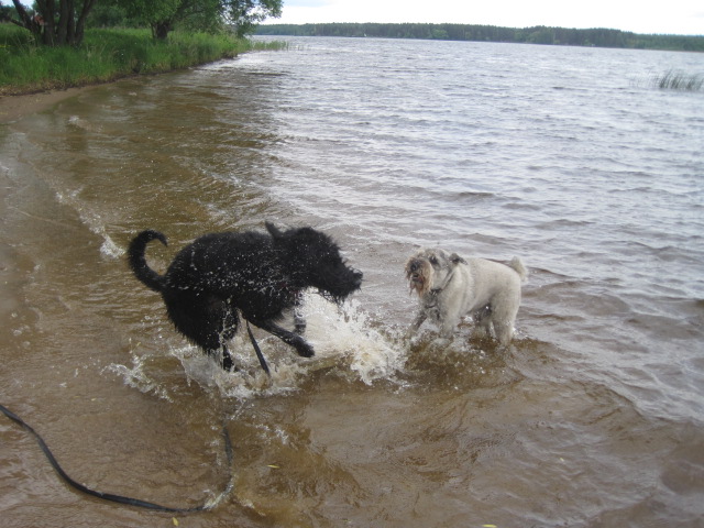 Фира научилась плавать))) сначала сильно била передними лапами по воде(как дети которые учатся плавать)) апотом поплыла по настоящему!! Вот уж чего она никак не боится-это вода, вода её ничем не пугает -ни глубиной ни брызгами))) даже нырять пытается)))