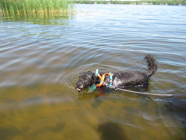 Постригли когти (слишком царапалась когда плавали)-процедуру перенесла на 5+) На прогулке ( пока периодически) пристёгиваю к Тёме и Чапа перестала опасаться близости других собак.