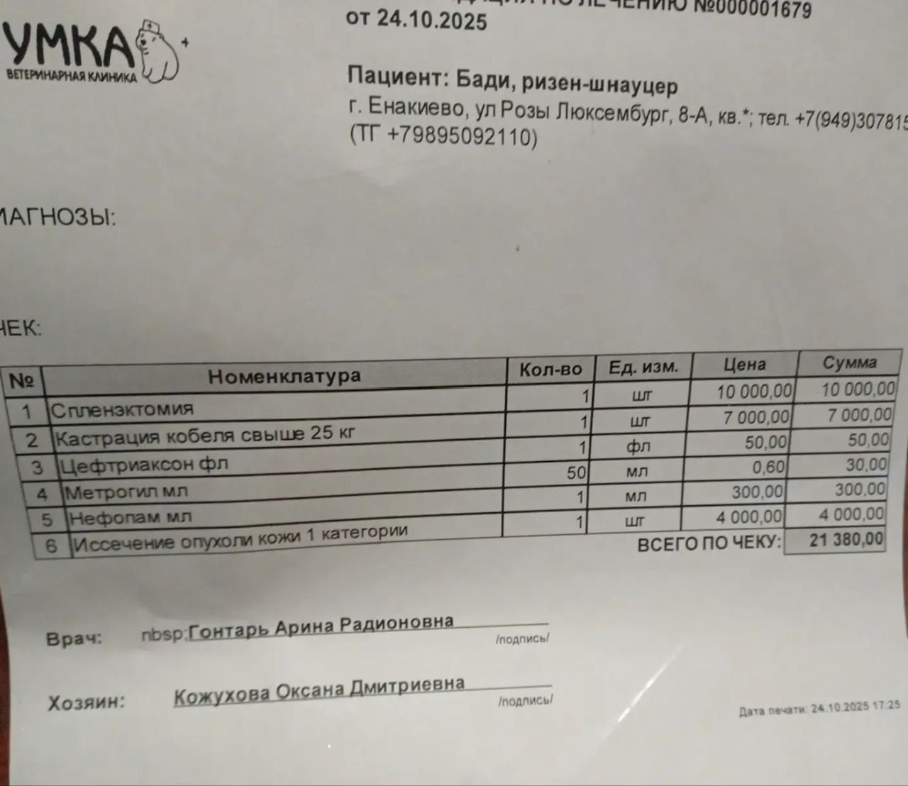 Юлин брат оплачивает стационар, чеки собирает. Немного некогда ему скинуть их мне, армия, сами понимаете ,а иногда и домой не попадает, а остаётся на питомнике..