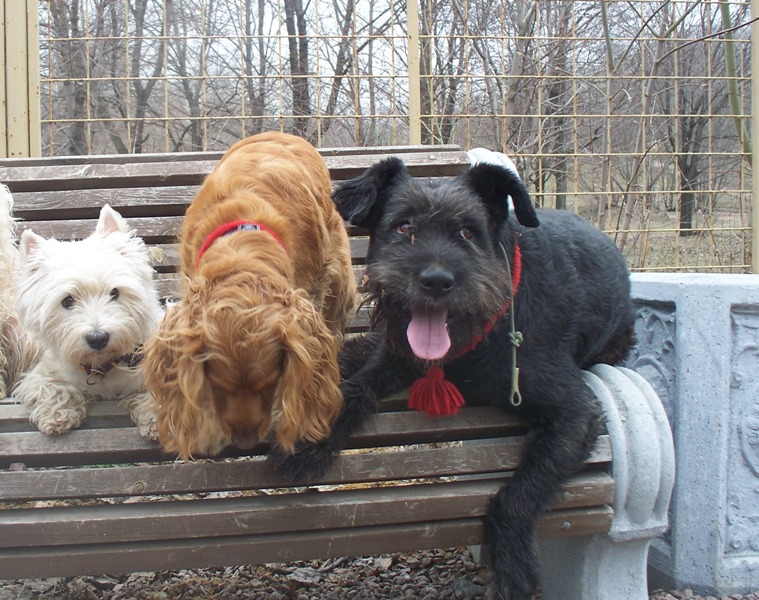 У Джесси еще появилась подруга - скотч терьер (раньше на нее набрасывались), теперь без всяких проблем гуляем. Скотчик Челси в наглую теперь ходит под Джессиным животом.