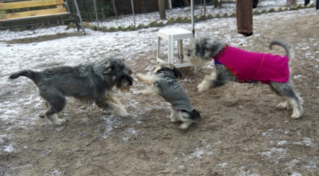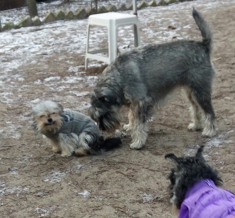 Какие хорошенькие маленькие собачки, прямо игрушечки)! И храбрые - как со шнау играюет