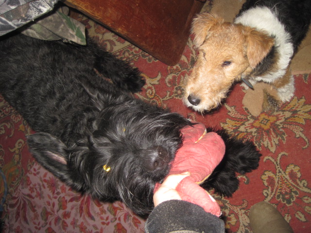 На четвёртом цикле игры,предвидя финал "Дай", Дарья попыталась взять зубами не тряпочку, а мою руку, хитрюля)))))) (типа-я тебя щас зубами... ты испугаешься и отдашь мне мою тряпочку))))) за что получила от меня щелчок по носу со словом " Больно" и отпустила..)))) Но кстати, в зубы руку взяла, но не давила))) и без агрессии..))))