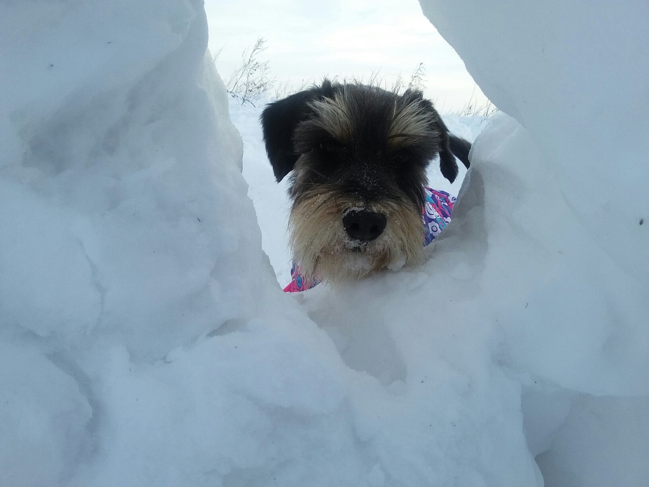 У нас давно такого снега не было! Мы, когда гуляем не по проторенной дорожке, приходится Деньке дорожку протаптывать, иначе ему не пройти