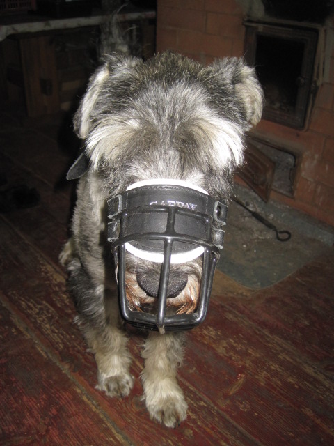 С меня фотка Тёмы в наморднике)))