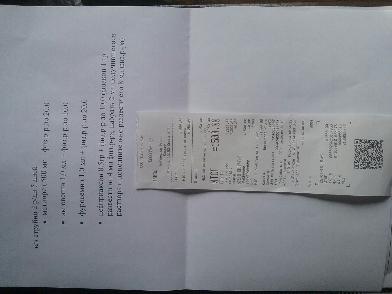 По деньгам прием 1250р (В чеке1500р, пробили глистогонку Максу в один чек)