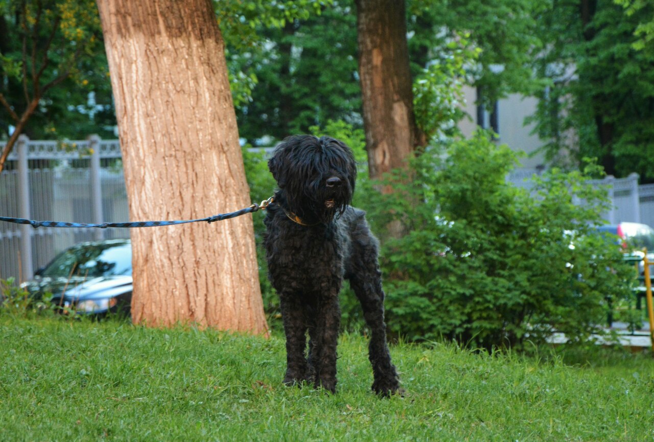 Всю ночь приводили с Машей мелкого мальчика в порядок, (попросила Машу помочь помыть мальчика, а оказалось нужно было состригать панцирь), только в 6.30 закончили. Панцирь был из говна, и мочи, ну и соответственно грязи (запашок теперь в квартире замечательный). Думали ризеншнауцер, а из панциря появился черный терьер, с длинными ногами, очень подвижным, с замечательным баском(соседи очень рады), да еще любителем скидывать с подоконника вещи, но очень истощенным, кожа и кости, без прослоек. Ванную комнату не знает, пока затаскивали, мелкий испортил своими когтями пластиковые панели. Лифт мальчик не знает, заползаем на пузе, а вот выходим как скаковая лошадь. Насчет знания команд, пока от меня скрывает свои возможности. Боится замаха людей, но к людям тянется за лаской. Пока у меня предположение, что мальчик удрал с участка.