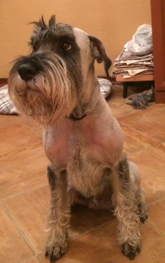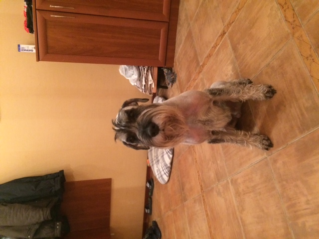 С кошками мы не общались, но на улице гоняется за ними. В машине ездит хорошо. Ездит сзади в багажнике универсала, не укачивает. Заводчику не сообщали, не очень понимаю, чем она может помочь. С другими собаками игрив. Если маленькие рычат, то игнорирует, если рычит сосед шар-пей, то мы рычим в ответ. Последняя прививка сделана 01.10. Тримминг 05.10. Кличка Нобель. Полная кличка неттл грей нью нейман таксист, потому что первый из помёта родился в такси. Болел один раз два года назад, укусил клещ и была рвота и понос. С тех пор ничем не болел (ттт).