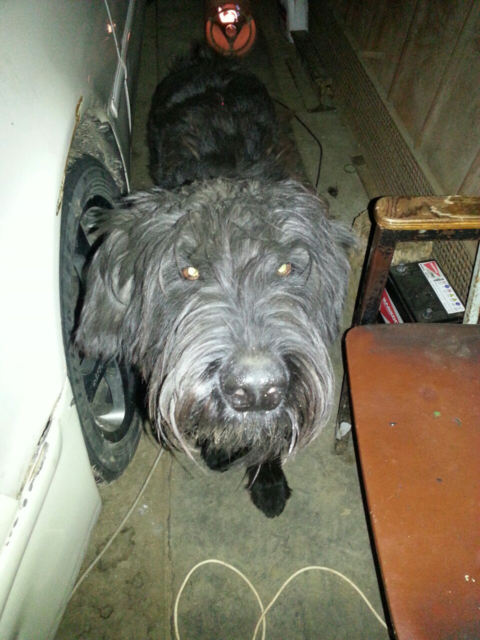 Сегодня вечером перезвоню, должны глянуть клеймо. Её нашли станице Северская, красн.края. Это 30 км от Краснодара 2 недели назад.Держат её в теплом гараже. Хорошо терпит, ласковая, шерсть жёсткая. Сегодня приезжал мужчина её смотреть, хочет взять для мамы. У них был ризен , но сбила машина. Пофоткал её , чтобы показать маме. Завтра даст ответ. Я сказала про разведенцев и если отдадут , чтобы записали паспортные данные. Но вечером ещё ей напомню.