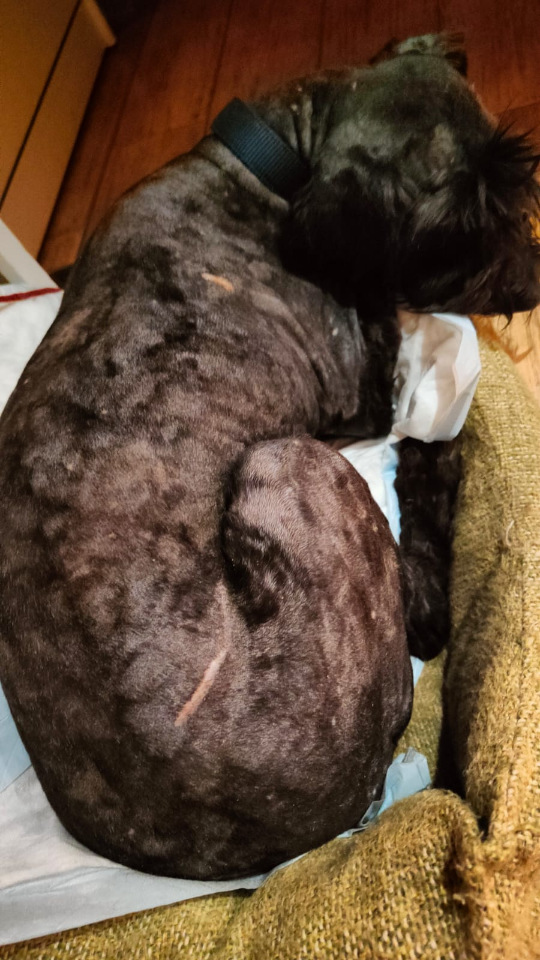 Сегодня удалось ее поймать и закрыть. Побрили, она в каких-то шрамах. Пока опасается, конечно. Но агрессии ни к кому не проявляет.