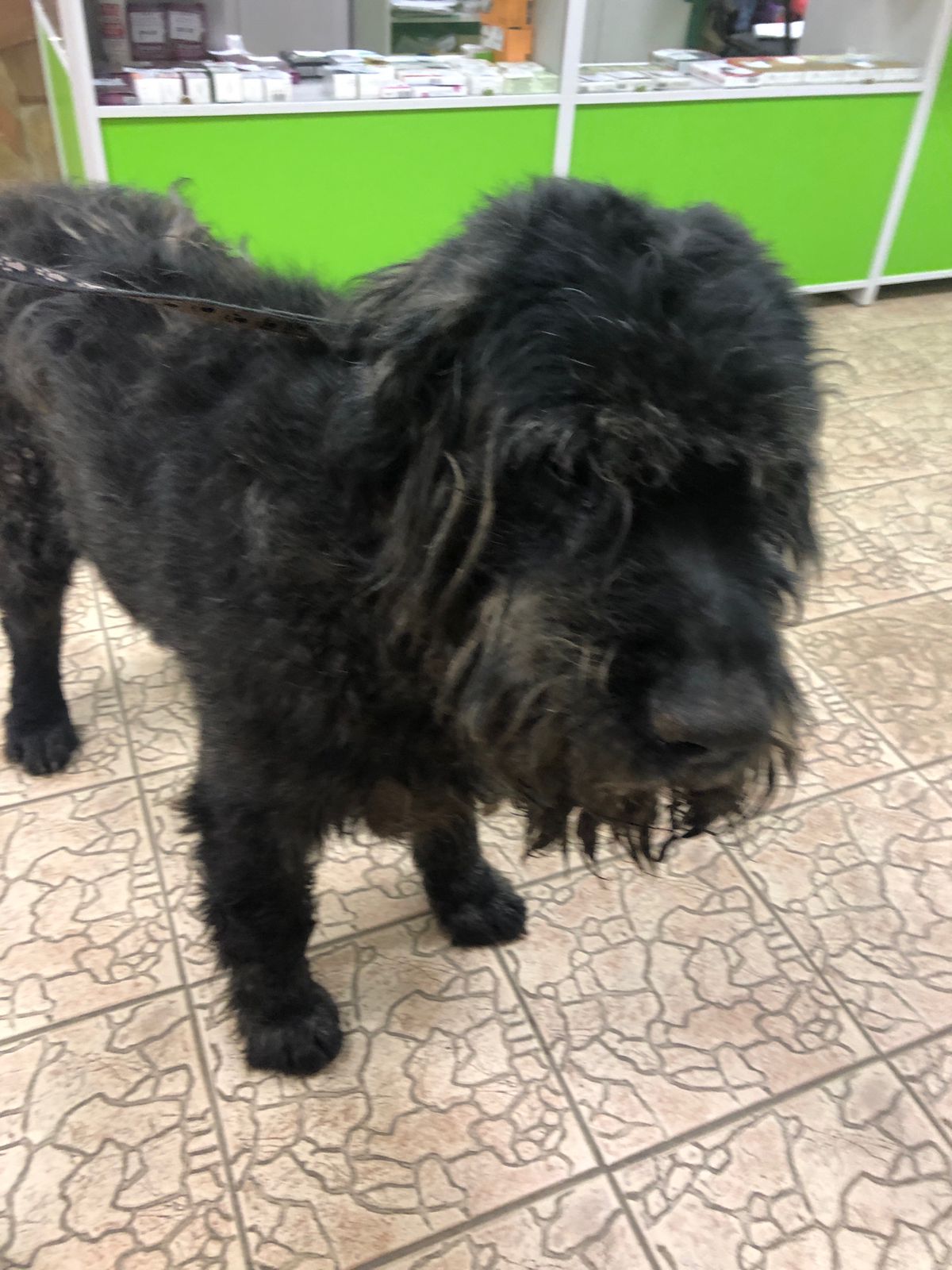 Заводчица Ирина предложила помочь со стрижкой, но сейчас холодно его раздевать, да и условия не те. Парень адекватный, в клинике не обращал на кобелей внимания.