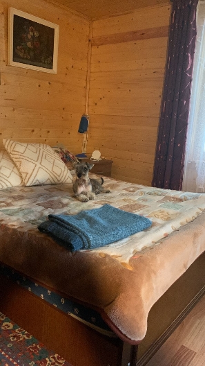 Кровать знаем хорошо( позже Арчун дал ему понять, что кровать и пр. это его, а тебе выделили место). Ирина достала одну из больших лежанок Арчи для Овнера. И пес был счастлив!!!! После обеда как залег в неё спать, так и проспал почти до вечера. У Ирины сердце сжималось , глядя на него...