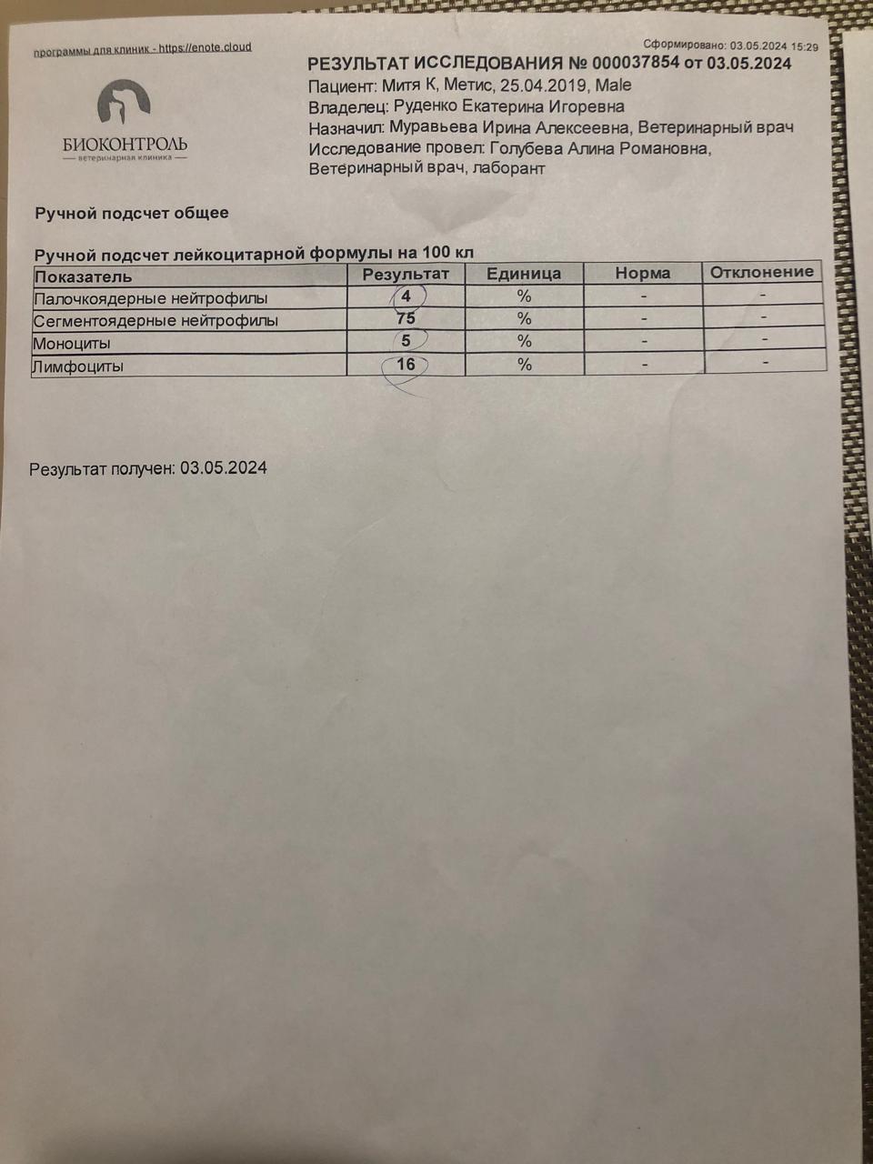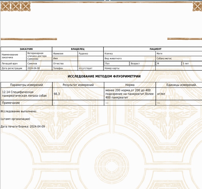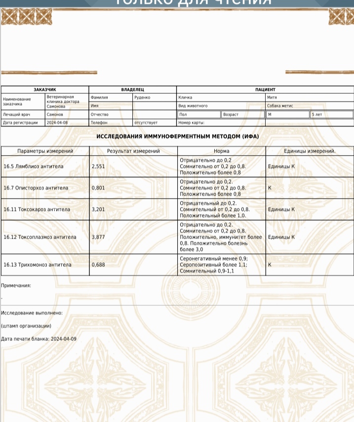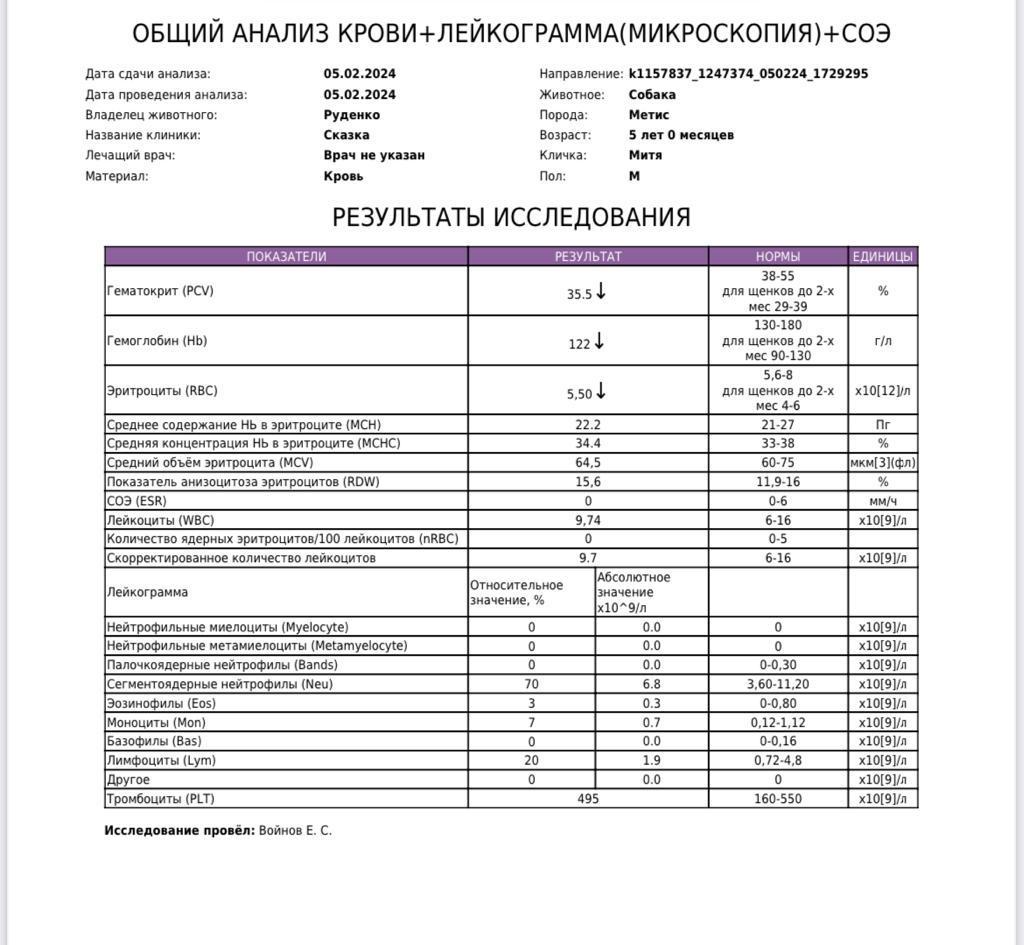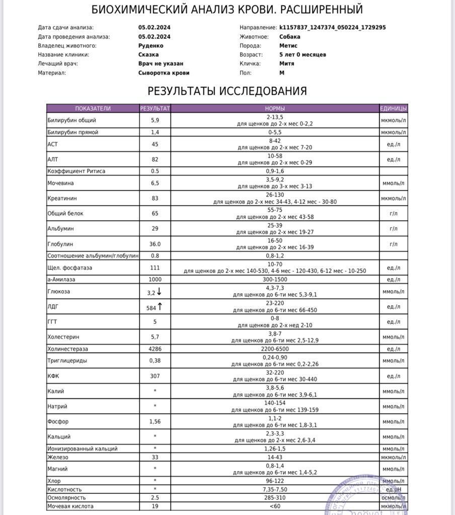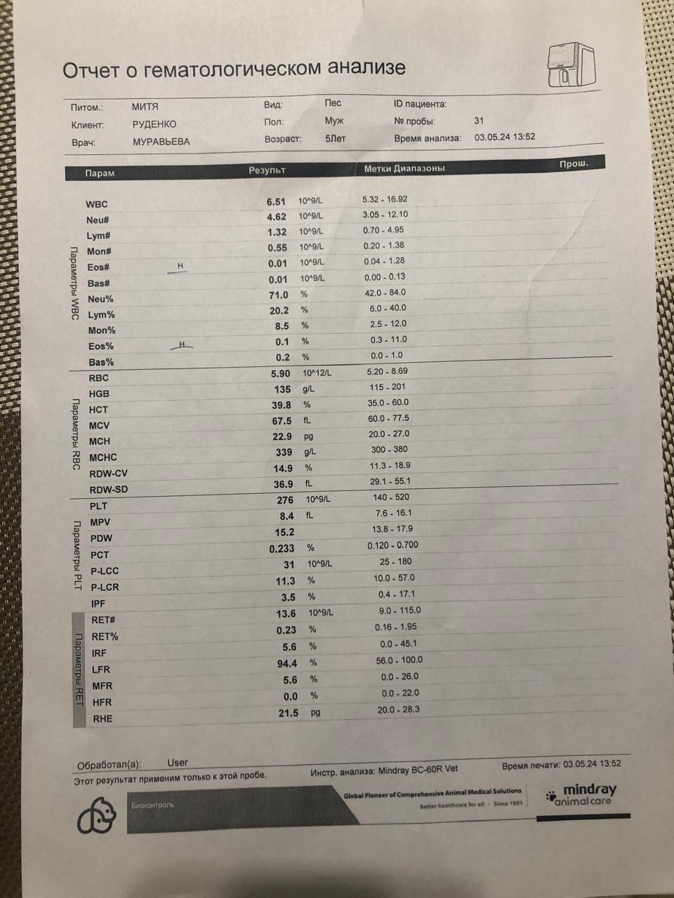 Пришли анализы Мити. Все собрал, что можно...