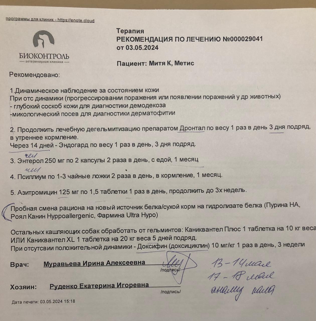 Глистогонное Инспектор 10.01. Повтор через 10 дней врач написал.